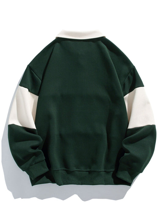 Color Block Patchwork Polo Sweatshirt with Relaxed Fit