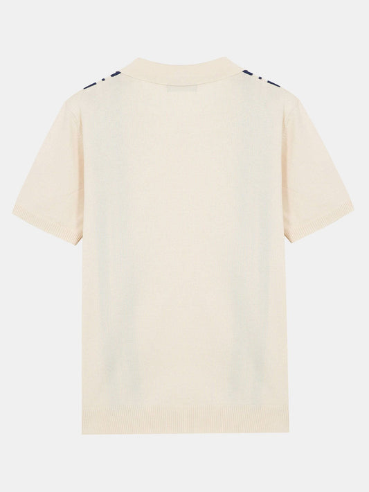 V-Neck Polo Shirt with Wave Jacquard Knit